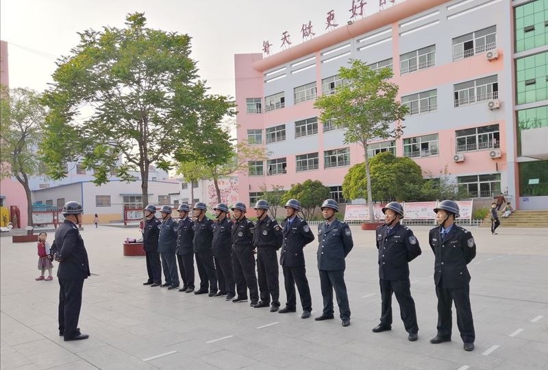 他们从学校安保实际出发,重点演练了队形队列、一键报警系统使用、脚叉使用、安保器械综合使用。接着,一“歹徒”假扮学生家长进入校门,在门卫保安要求登记时发生争执,保安坚持原则,坚决不让其进入校园,为全校师生建起了安全防线。
