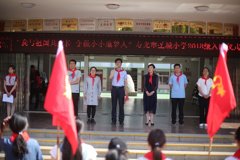 在庄严的国歌声中,少先队入队仪式正式拉开帷幕。学校党支部书记、校长韩高波致辞,希望全体少先队员热爱祖国,珍惜来之不易的幸福生活,好好学习,争做全面发展的社会主义建设者和接班人。入队仪式上,新队员们以标准的站姿,迎接这一庄严时刻的到来。出旗、唱队歌、成立新中队、宣读新队员名单、佩戴红领巾、宣誓、授中队旗、聘任辅导员、新老队员讲话、大队辅导员讲话、呼号、退旗……规范的流程、庄严的气氛、高涨的热情,给现场的少先队员们留下了深刻的印象。在充满朝气的少先队队歌声中,一年级509名学生正式成为光荣的少先队队员。