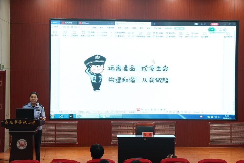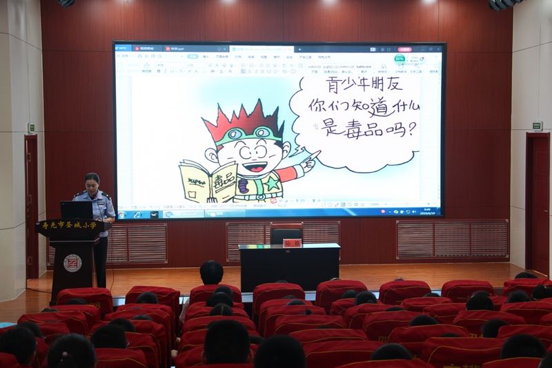 本次活动是圣城小学联合工业区派出所共同开展的一项活动,活动分为报告讲座、观看视频两部分内容。工业区派出所张颖警官做了“珍爱生命 拒绝毒品”专题讲座,从“什么是毒品”“毒品的危害”“认识新型毒品”“面对诱惑我们怎么做”等方面,以文字和动画的形式,讲解禁毒知识,精彩的报告赢得学生阵阵掌声。报告之后,学生共同观看禁毒宣传片。(审核:朱艳丽 作者:李景阳)