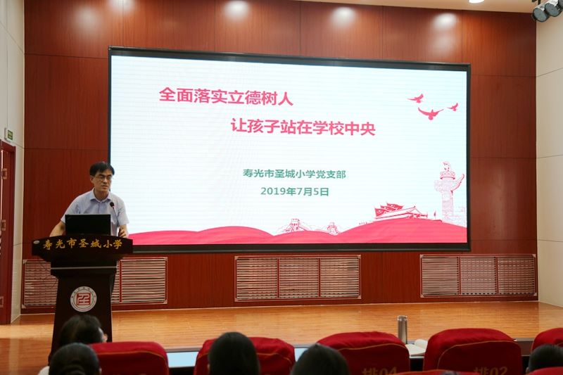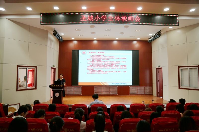 师生服务中心、学生发展中心、课程发展中心、教师发展中心、幼儿园、督评宣传中心及惠民服务中心相关负责人就2019年上半年本中心、科室开展的重点工作和取得的主要成绩向全体教职工进行总结汇报,并对突出问题进行梳理分析,明确今后努力方向;党支部书记、校长韩高波充分肯定了圣城小学2019年上半年工作,要求全体教职工担负起责任和使命,真抓实干,凝聚正能量,为创建品牌名校不懈努力。