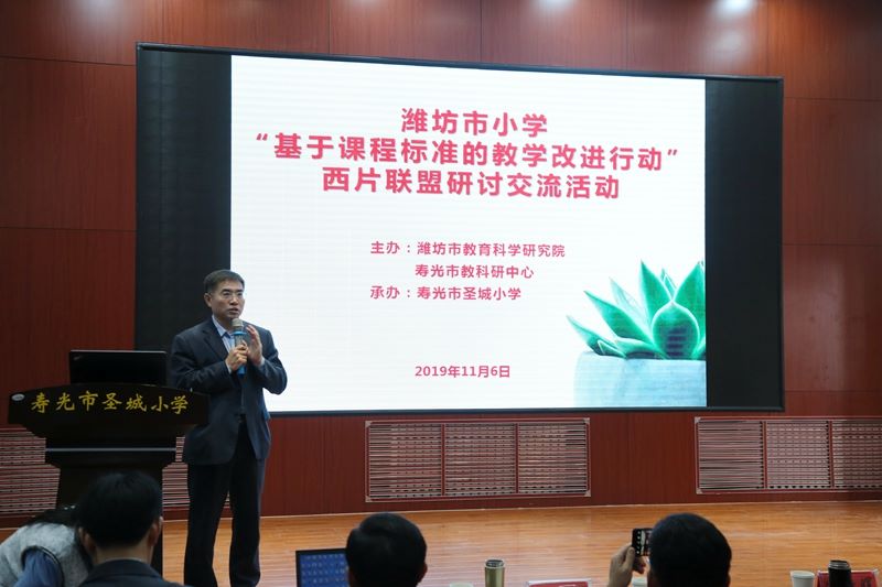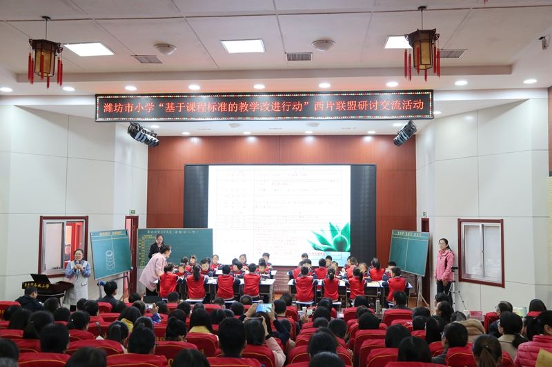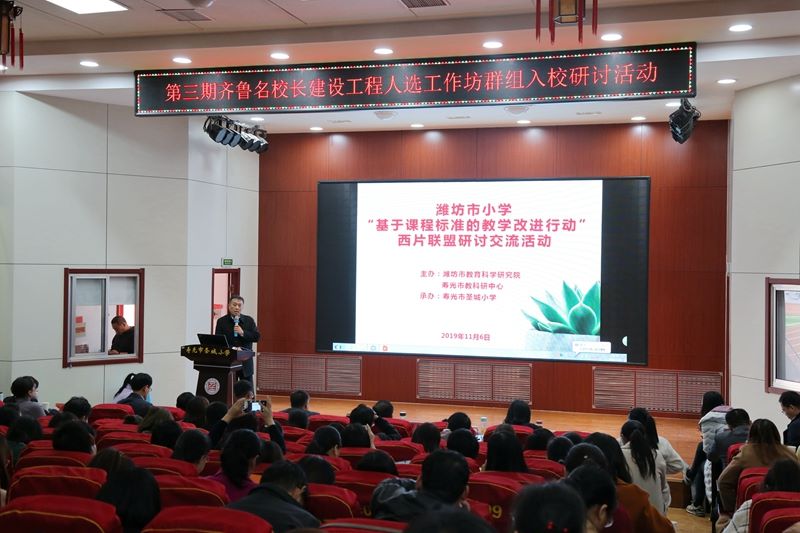 11月6日,潍坊市小学“基于课程标准的教学改进行动”西片联盟研讨会暨第三期齐鲁名校长建设工程人选工作坊群组入校研讨活动在市圣城小学举行。潍坊教科院、第三期齐鲁名校长建设工程部分校长、潍坊市小学“基于课程标准的教学改进行动”西片联盟校、寿光市教体局分管领导及各县市区教研室教研员、寿光市小学校长、骨干教师260余人参加活动。