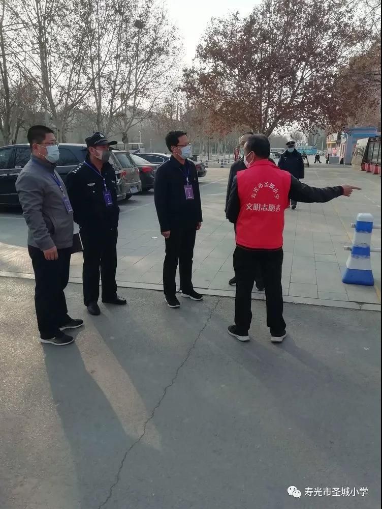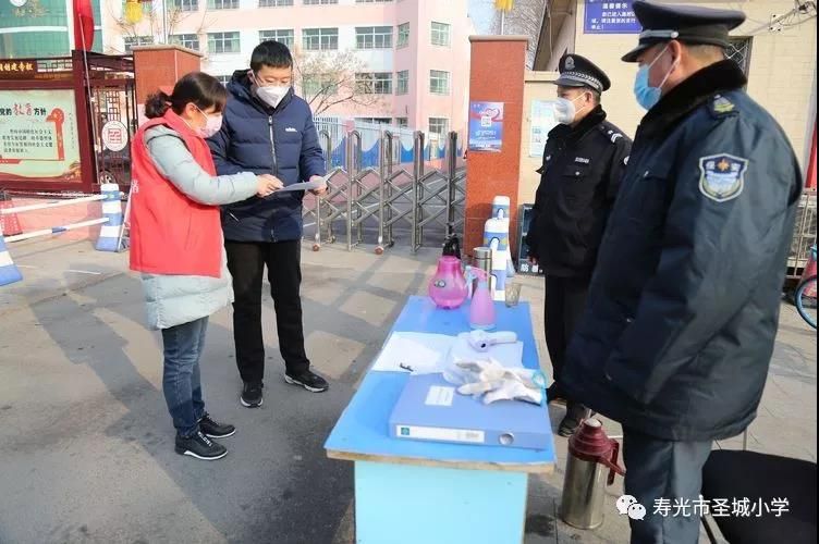 7点32分,党支部书记、校长韩高波,副校长李政准时到校。从询问家属区人员出入、师生体温检测情况等开始了他们一天的战“疫”工作。