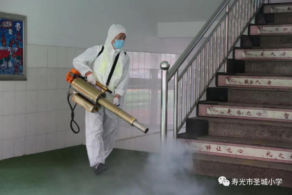 为最大程度降低疫情传播风险,保障师生开学后的健康安全,营造干净卫生的校园环境,寿光市圣城小学疫情防控领导小组主动落实主体责任,准确研判学校防疫工作的实际情况,积极做好防控应急物资的筹备和校园卫生与消杀工作的有效落实。