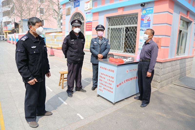 “面对疫情我们不能当旁观者,必须是参与者,因为我们的身后是学生、是老师!在“疫情”一线的我们,有着重大的责任,一定要严格对出入人员进行测量体温、扫二维码和基本信息登记制度……”早上7点30分,李文海正在给安保人员开会。