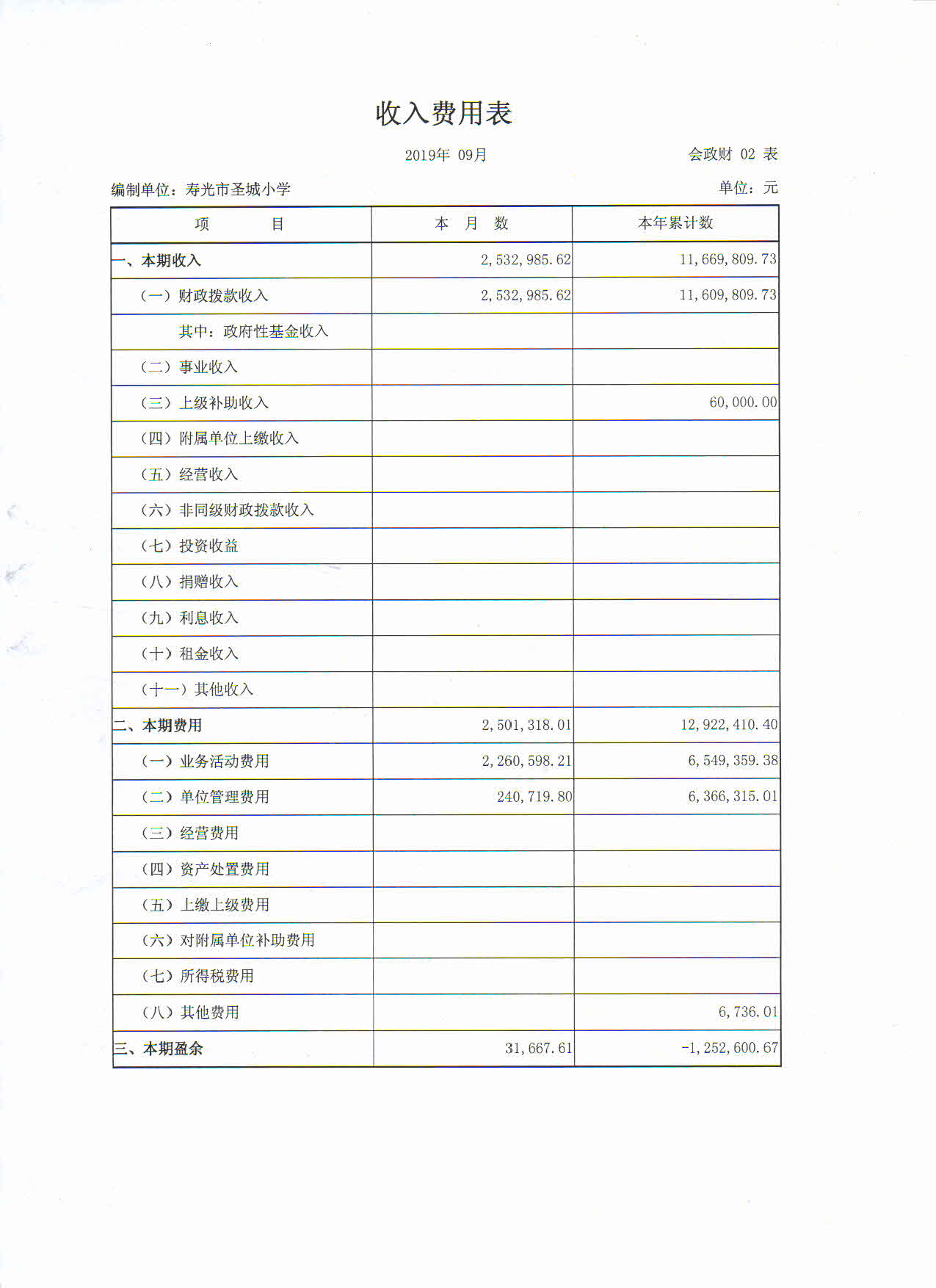 经费收支情况表