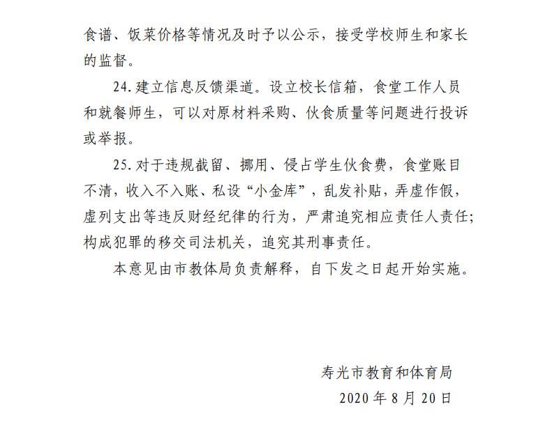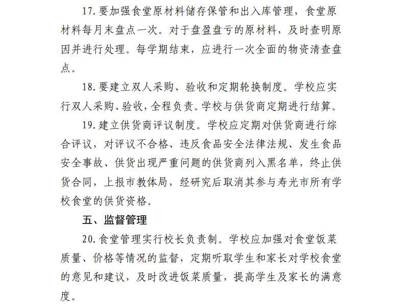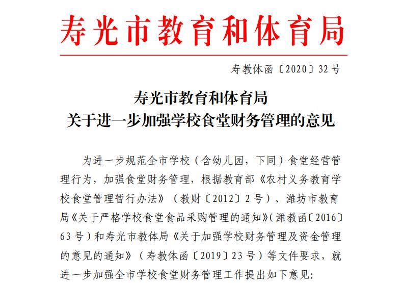 寿光市教育和体育局关于进一步加强学校食堂财务管理的意见