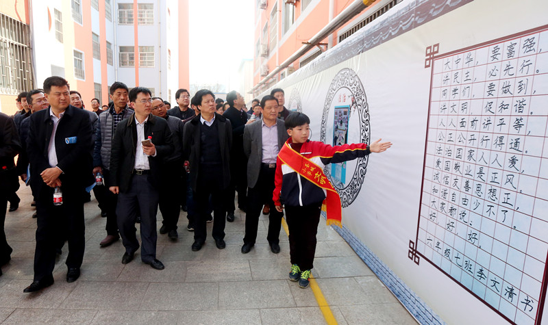 会前,参会人员在学校校园文化解说员的带领下,参观了圣城小学的校园文化,对圣城小学以“让学生站到学校中央”的办学理念,打造的“圣贤文化”给予一致好评。随后,在圣贤学堂内,观看了市圣城小学与稻田镇赵家小学城乡结对帮扶活动专题片,市圣城小学与稻田镇赵家小学、市实验小学与羊口双语学校、道口小学与营里镇中心小学就去年的城乡帮扶活动进行了汇报交流。基础教育科相关负责人针对义务教育学校城乡结对帮扶、德育、学籍等工作进行了新的部署和安排,各学校在新学期要狠抓管理、促规范、创特色,实现教育工作的进一步提升。