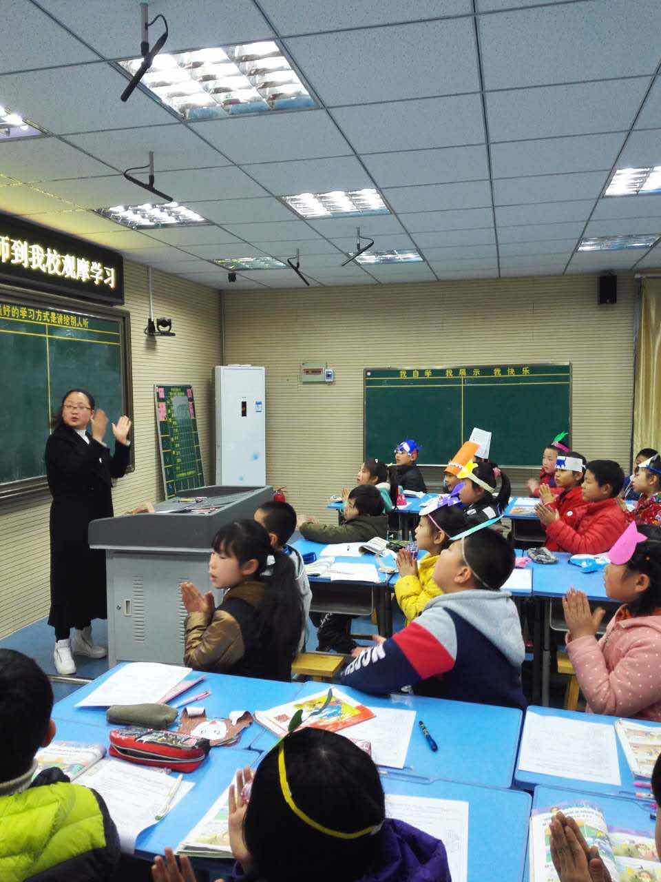 第三节是张双双老师带着三年级的学生来上的英语课,看三年级的小朋友带着头饰跟着老师打着节奏学课文。学生的展示丰富多彩,多种多样。