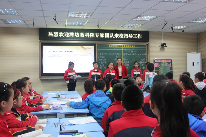 接着,调研组深入班级进行随机听课,潍坊市教科院副院长王尤敏对圣城小学的学本课堂给予高度评价,她说:“没想到学本课堂这么充满生机和活力,看到孩子们个个精神抖擞,全神贯注,只有这样的课堂才是高效的课堂,真正的锻炼了孩子。”