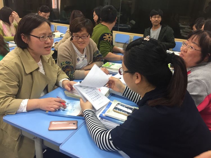 老师们针对如何执行有质量的常规展开了热烈的讨论交流。他们不但用心钻研教材,而且学生作业之前老师先做作业,学生练字的封面上附上老师的字帖,对于作文批阅,采用学生批、教师批、教师批阅学生的批语......等形式,非常用心。