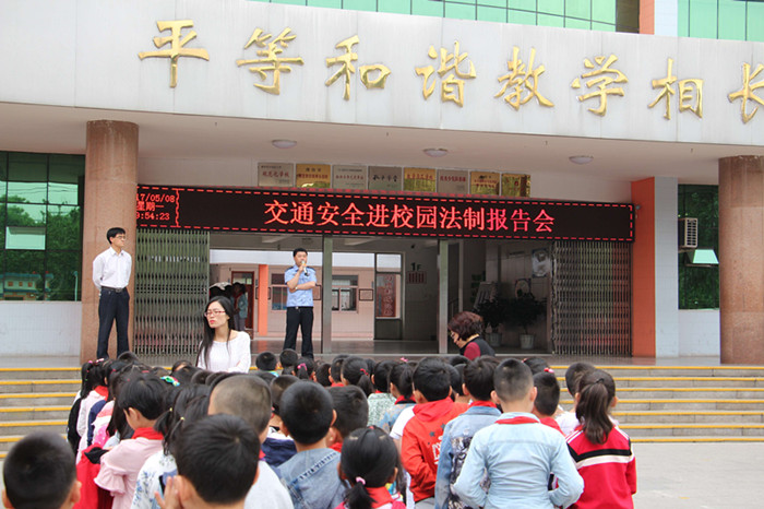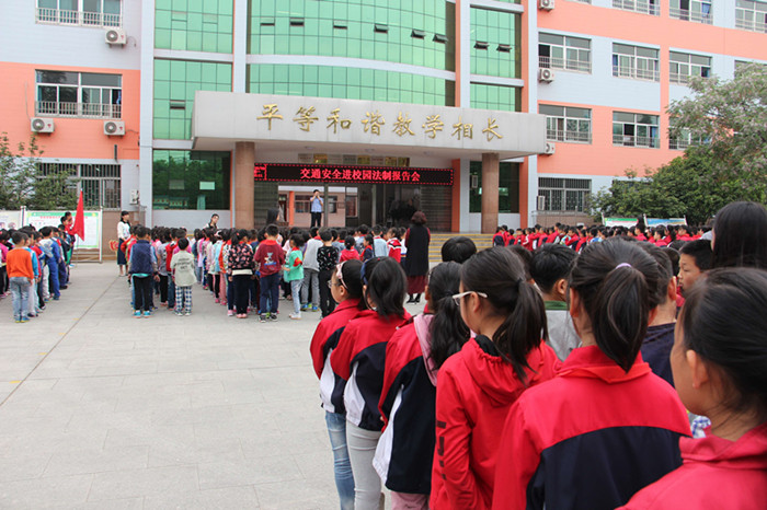为进一步增强学生交通安全意识和自我安全防范意识,切实保障学生的安全出行,5月8日升旗仪式时,在圣城小学的圣贤广场,举行了交通安全进校园法制宣传活动。全校2400多名师生参加,学校特别邀请了市公安局交警大队周卫江科长来学校为全校师生做报告。
